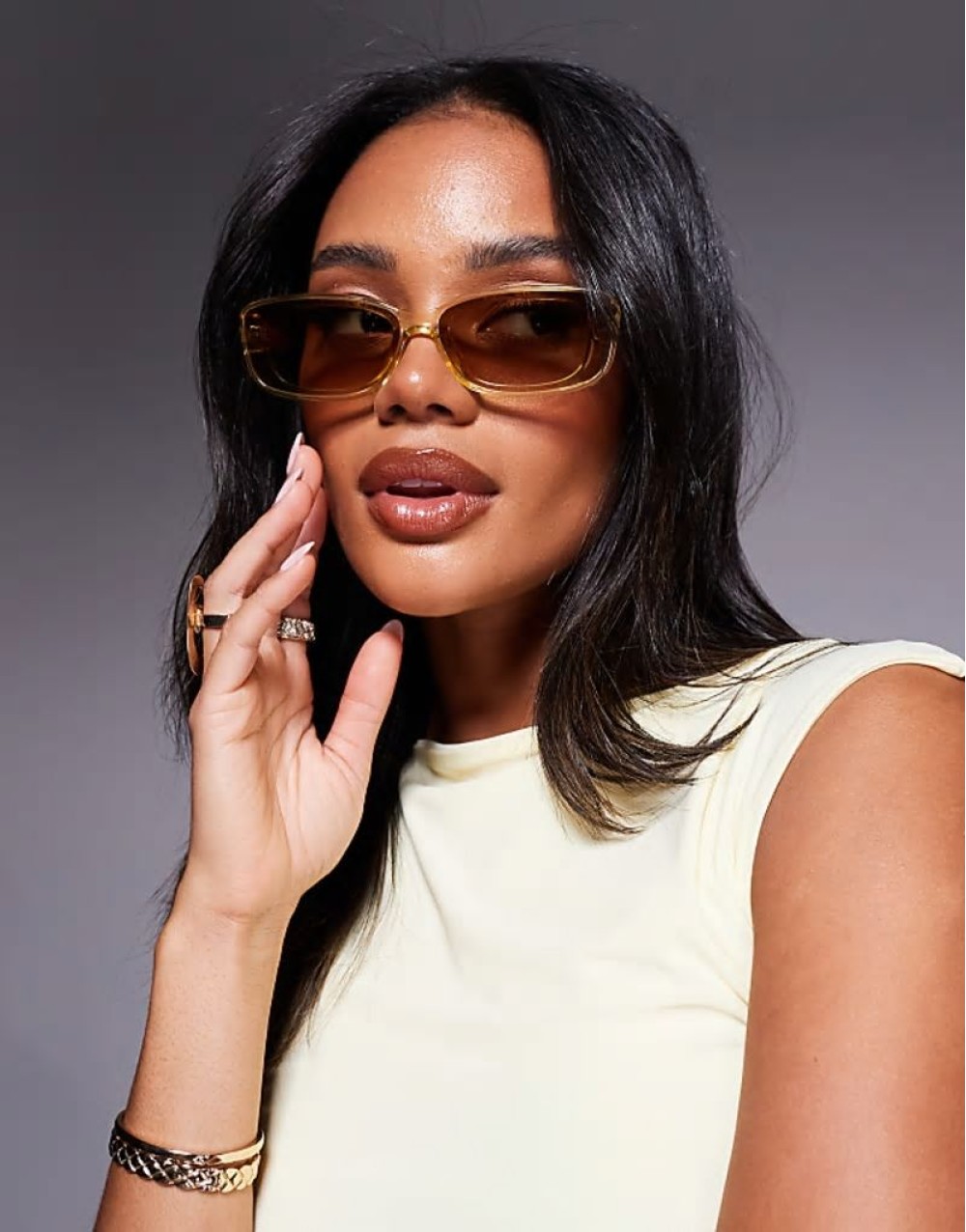 Quay vibe check slim rectangular sunglasses in crystal yellow